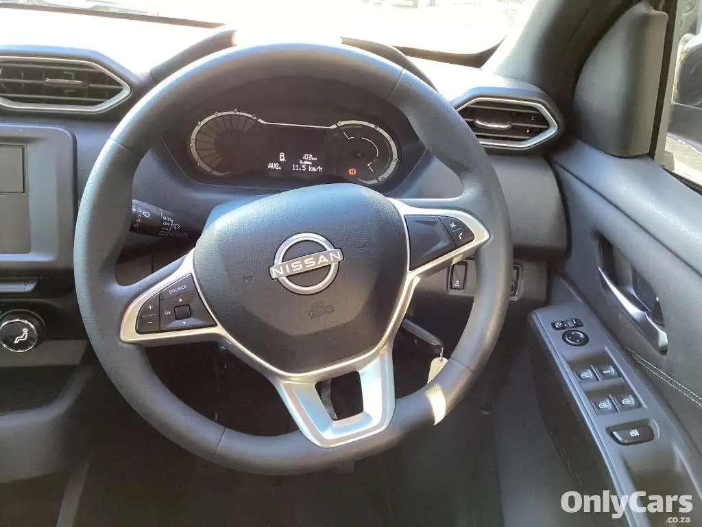 Air Conditioner, Alarm Immobiliser, Bluetooth, Carpet Set, Cartrack, Metallic Paint, Power Steering, Radio CD, Remainder of Service Plan, Remainder of Warranty. The Nissan Magnite 1.0 Visia is a compact SUV powered by a 1.0-liter, 3-cylinder petrol engine producing 53kW of power and 96Nm of torque. It features a 5-speed manual transmission, front-wheel drive, and a 40-liter fuel tank. The Visia trim is the entry-level model, offering essential features and a focus on affordability.